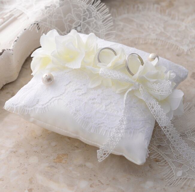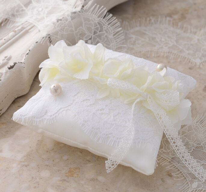 フランス製のリバーレースがドレスのような可憐でエレガントなリングピローです。